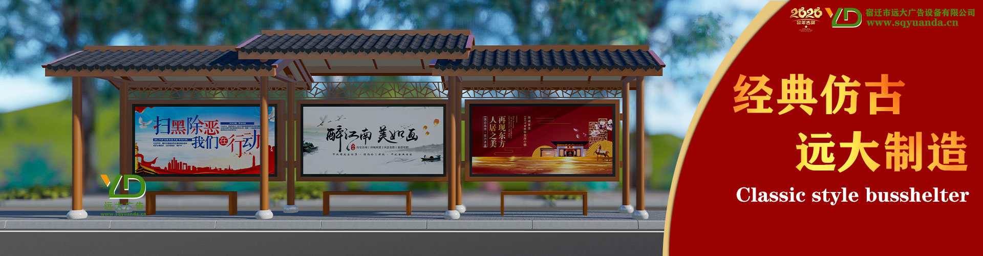 宿遷市遠(yuǎn)大廣告設(shè)備有限公司是一家專業(yè)生產(chǎn)公交候車亭,公交站臺(tái),閱報(bào)欄,指路牌,廣告垃圾箱,滾動(dòng)換 畫燈箱等系列產(chǎn)品廠家!產(chǎn)品多達(dá)上百種,亦可根據(jù)客戶的需求加工制作。